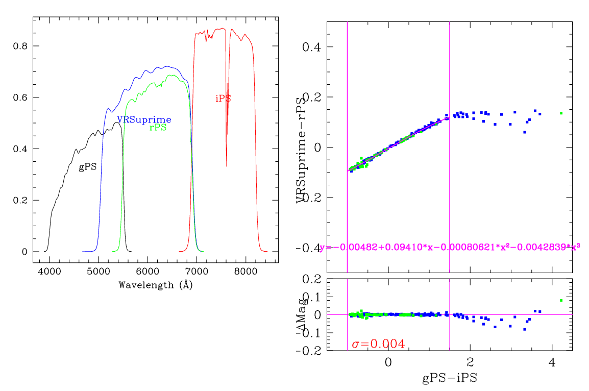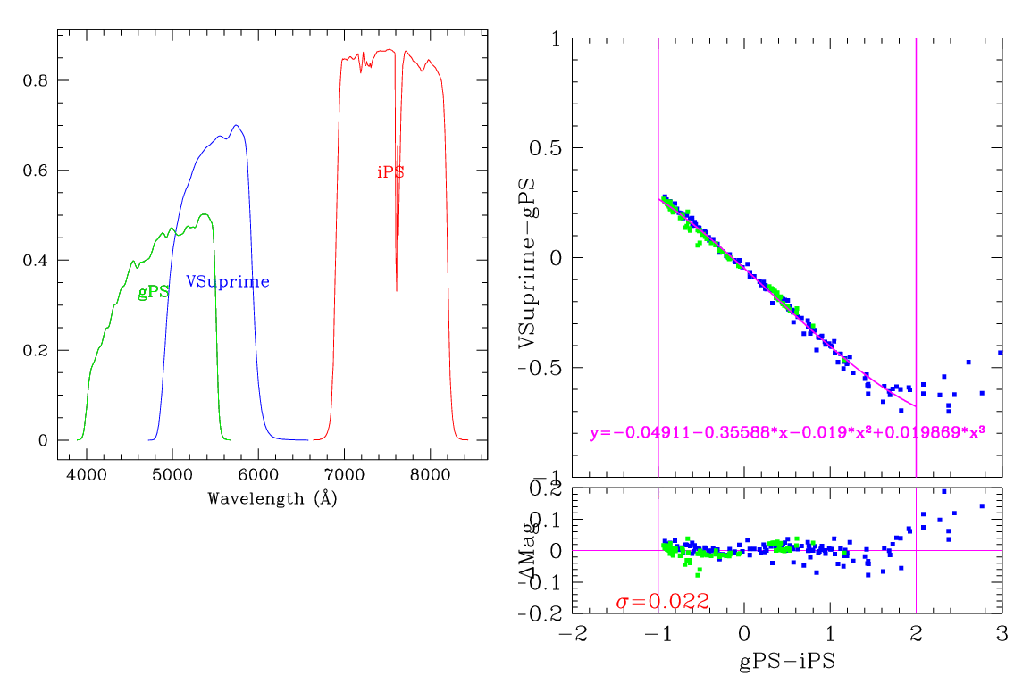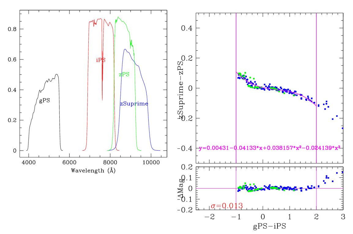 This page describes the Suprime-Cam filters, and the transformations between the Pan-STARRS photometric system and Suprime-Cam.
